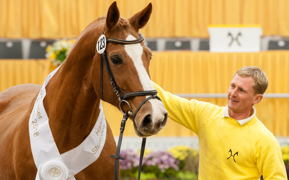 Two daughters out of April Sun are stabled in the barn of breeder Henning Mueller-Rulfs. Two other descendants successfully compete at the M-level. Being awarded the title Hanoverian Mare of the Year confirms that the value of the exceptional breeding performance of April Sun is much appreciated. She is closely connected to Verden’s auction program, even if April Sun entered the Niedersachsenhalle for the first time during the gala evening.