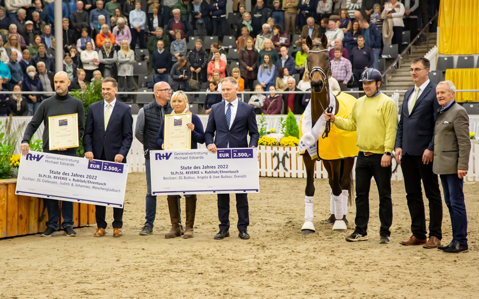 Since 2007, the Hannoveraner Verband has been honoring the Mare of the Year with the support of the insurance company R+V/VTV Versicherungen. This award, combined with well-endowed prize money, is meant to highlight the importance of mares for the Hanoverian breed.